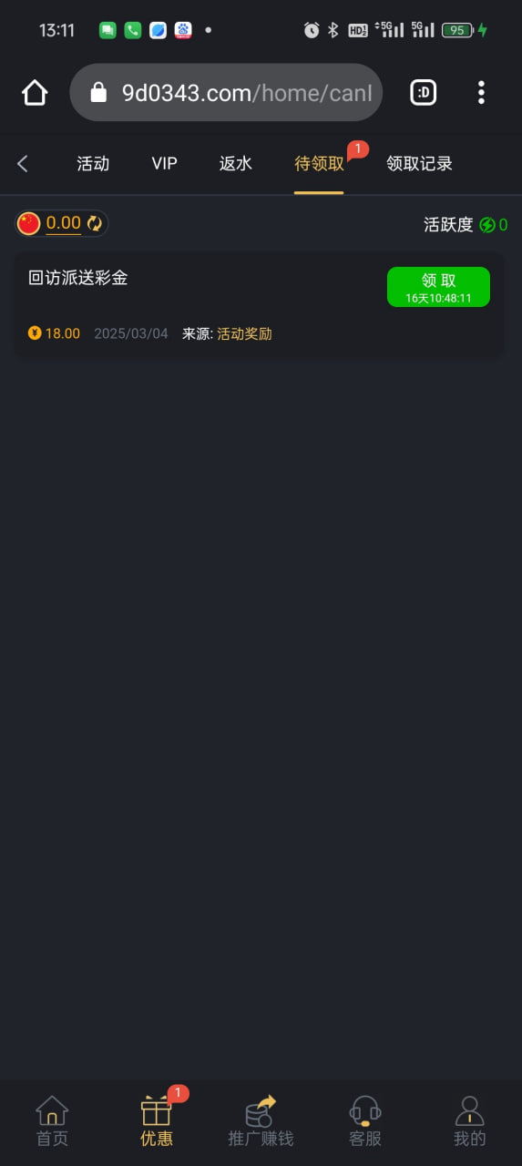 他回馈挺多的 具体什么时候发 只能自己登录看看
