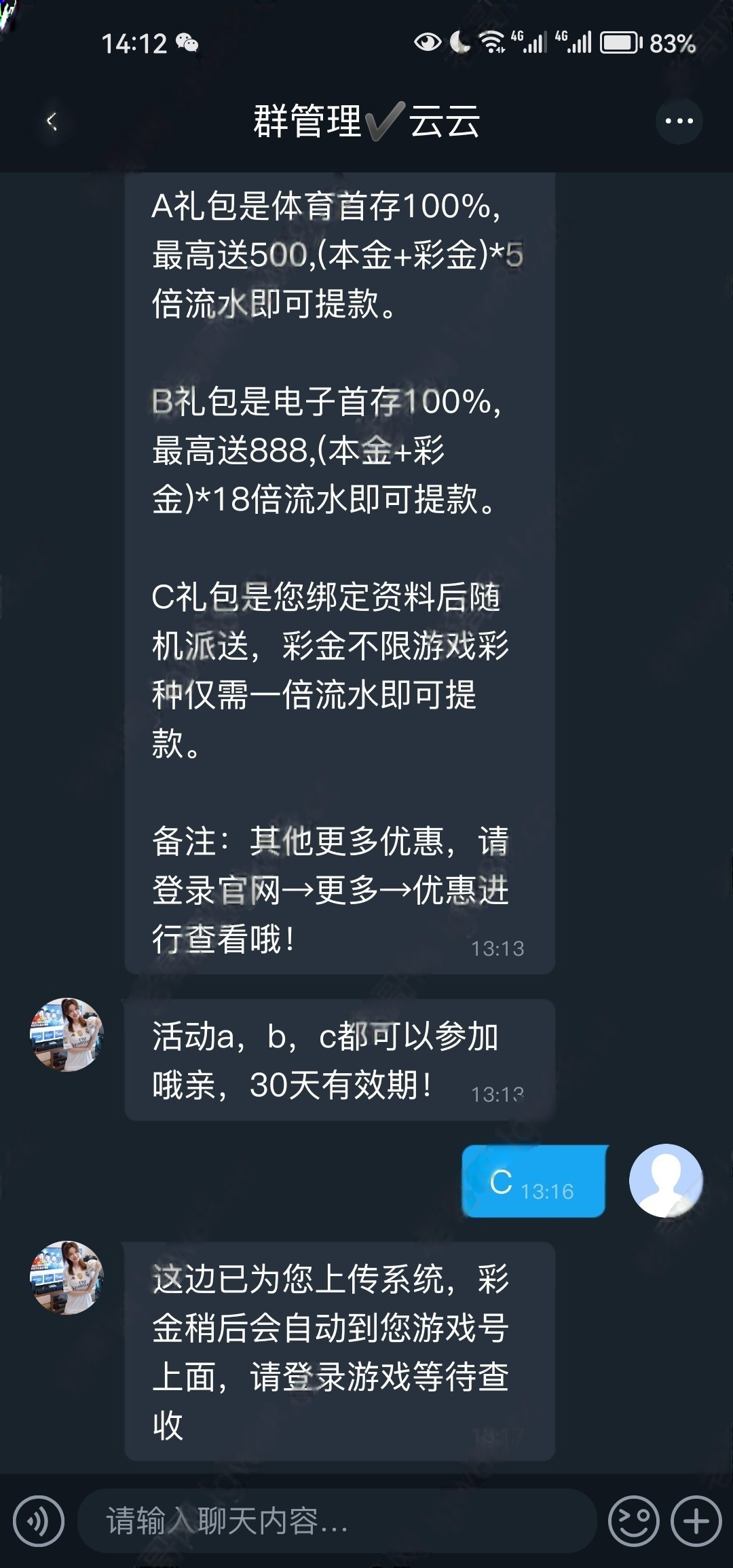 历史用户联系客服申请幸运大礼包,下载24聊天软件,发账号跟手机申请即可,自行碰瓷,禁止充值,出款自测!