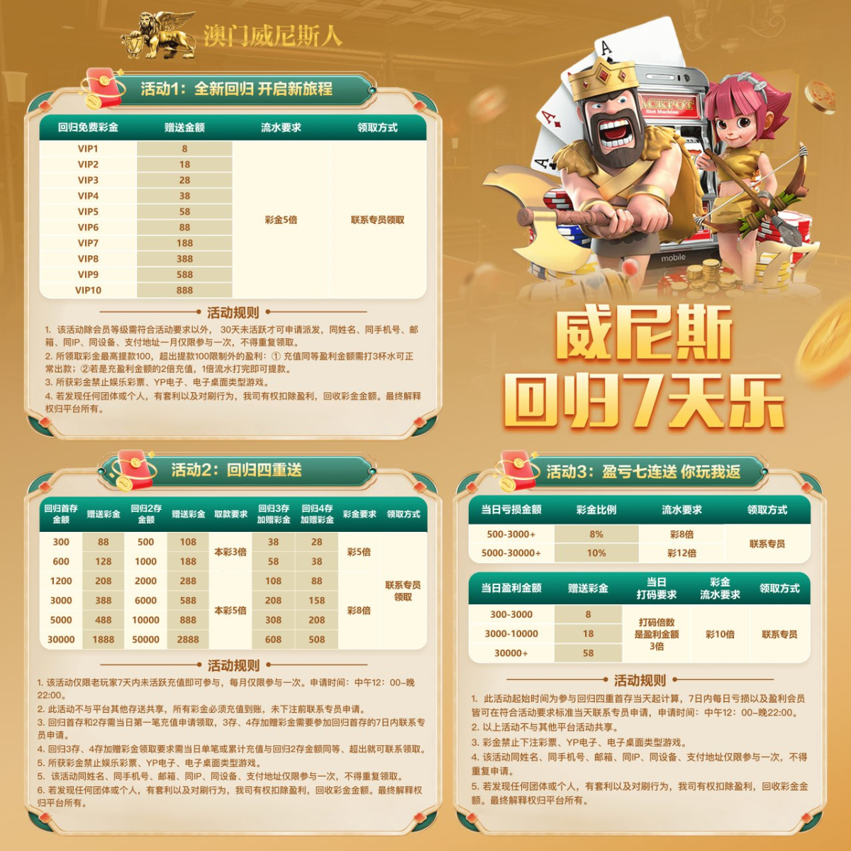 此台是广告区台的台子,提款是没什么问题,现在官网回访,看VIP等级送金额,自己看图。需要加他们的联系方式。想玩也可以自己玩