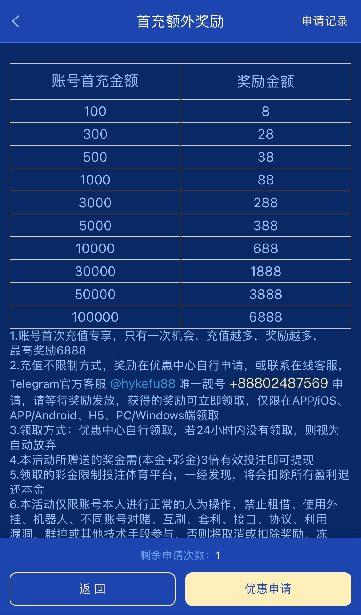 ✅【官网首存】首存100+8/300+28/500+38/1000+88/3000+288/本彩3倍水(多IP一律不处理,不听解释)