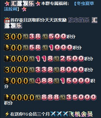 ✅活动3:有飞机的用户联系飞机 @hyyl963 客服进飞机群,每天晚上8点抽88红包十个人,每次存款还可以送积分,积分能参与188-1288RMB红包抽奖,提供飞机有效群组或频道赠送188RMB一个