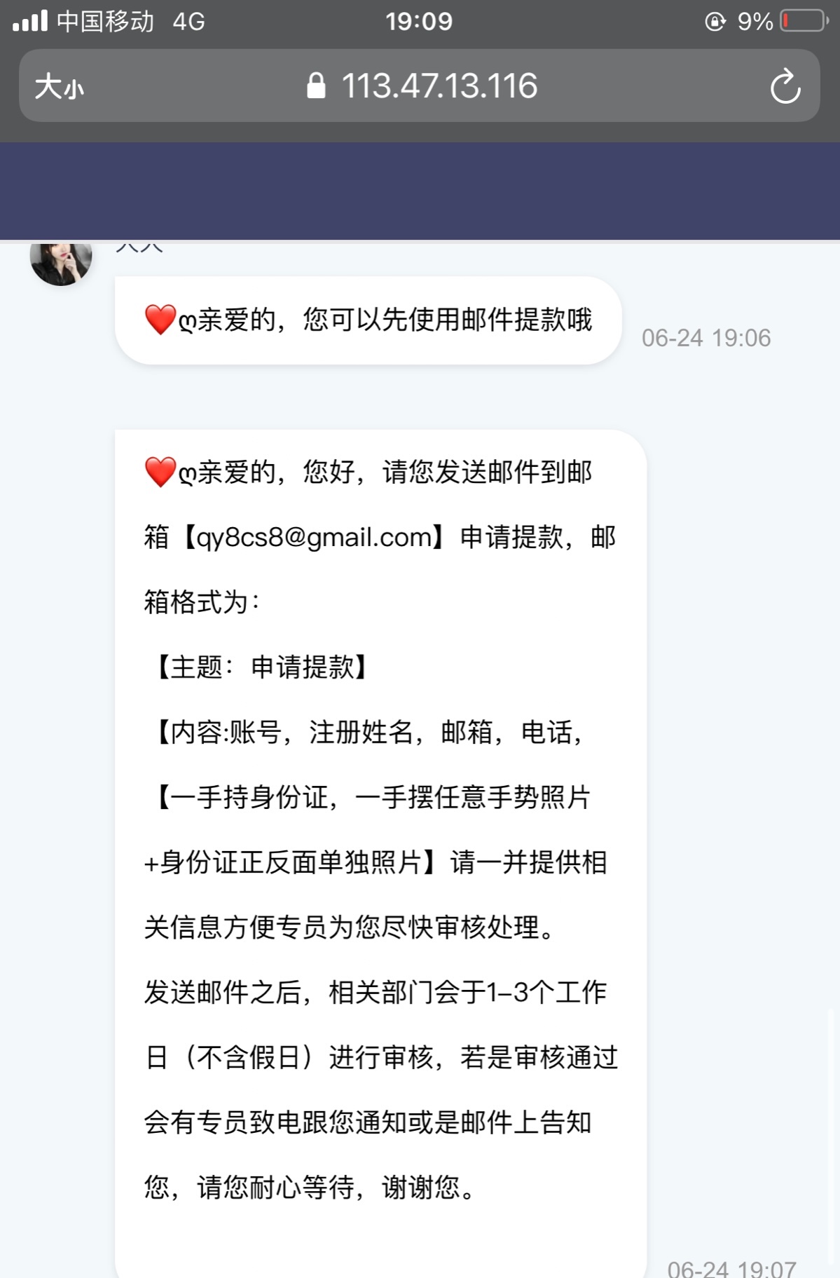 球我是24年注册的 手机号没在用了提款要 验证码收不到,问客服修改手机号,客服说修改不了手机号的,叫我发邮箱申请提款,让我手持,发邮箱还要审核1~3天,这个球友会靠谱嘛,我是看到站内贴才去玩的