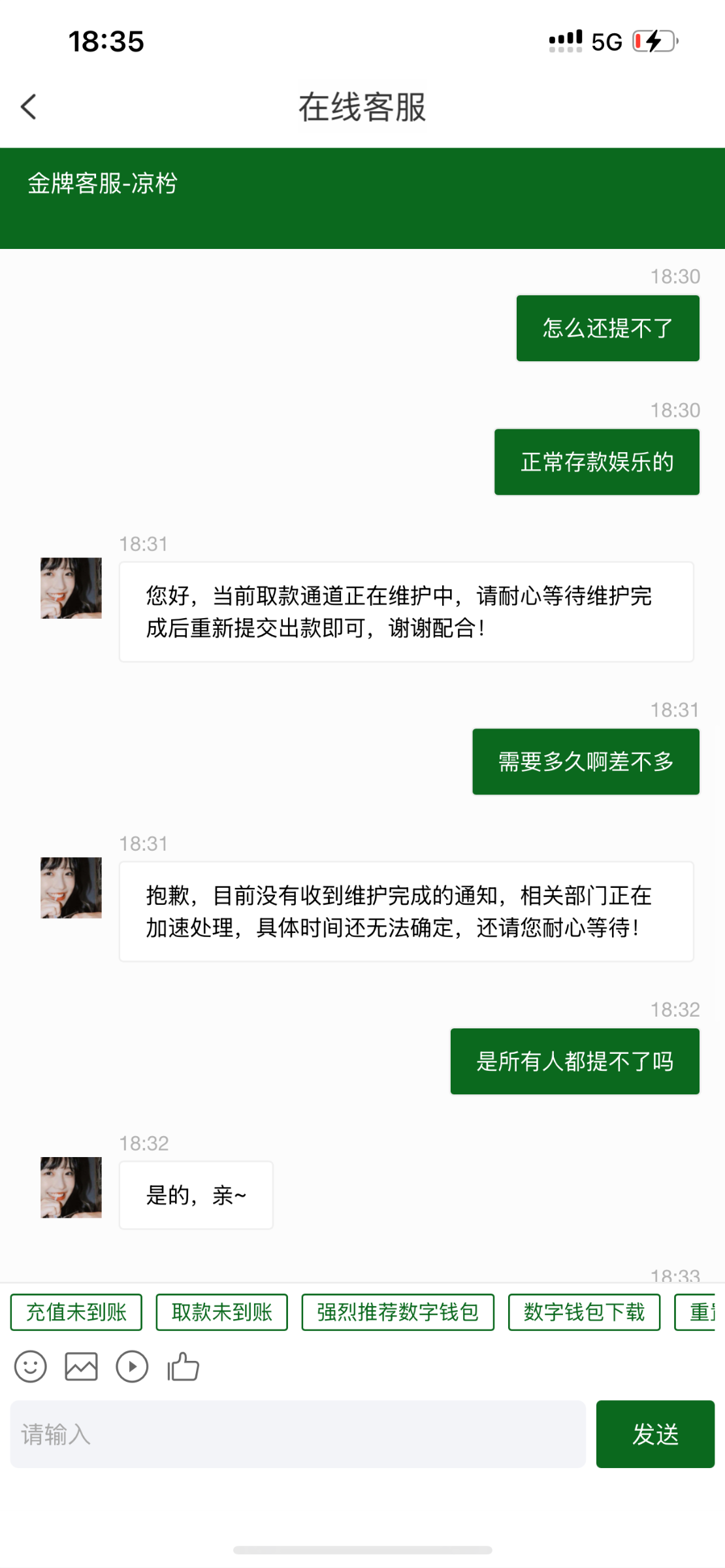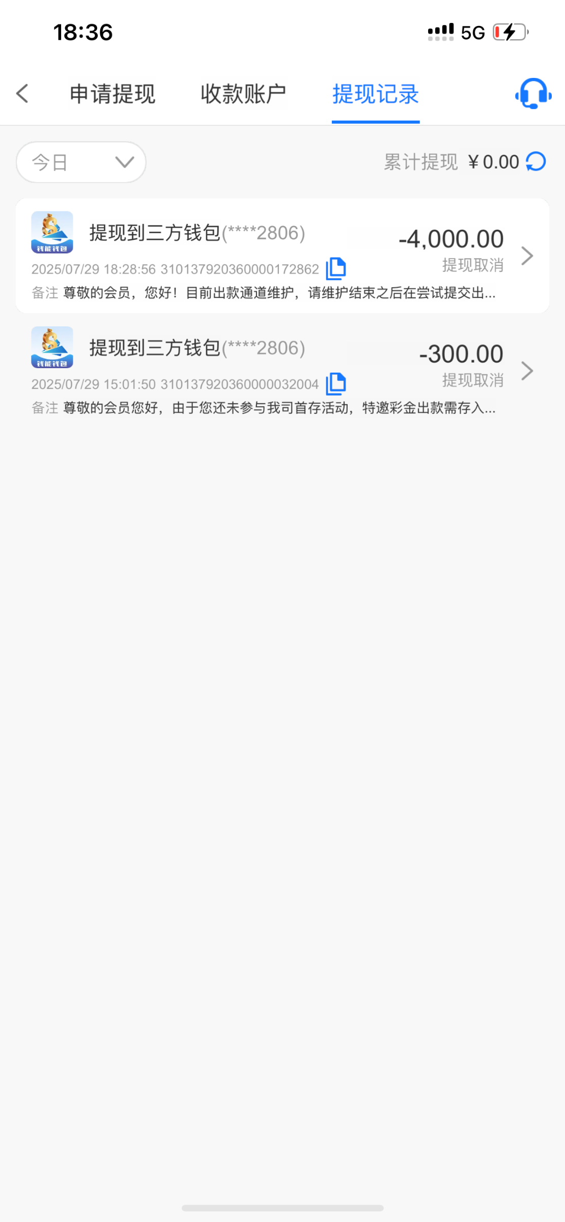 然后又打上去4000现在又说通道维护说所有人都提不了 老哥们你们看看能提款吗 等我提出来给大家20份猪脚饭谢谢了大哥们