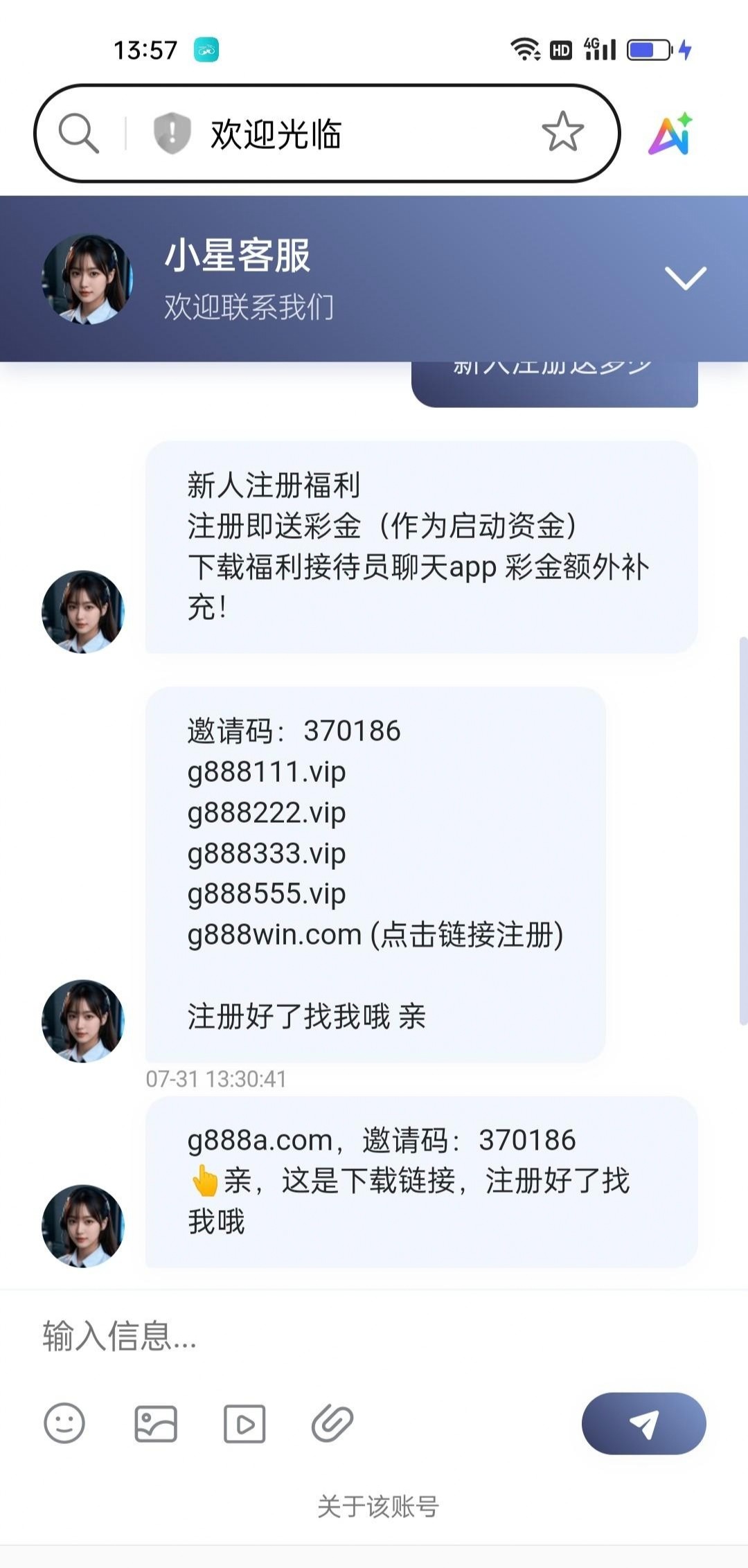 微信邀请,要手机号,送8元,评估钱包最后给了18,没打出来。链接g888a.com 邀请码370186 聊天软件ant.g88866.com 接待员琳琳 g8887