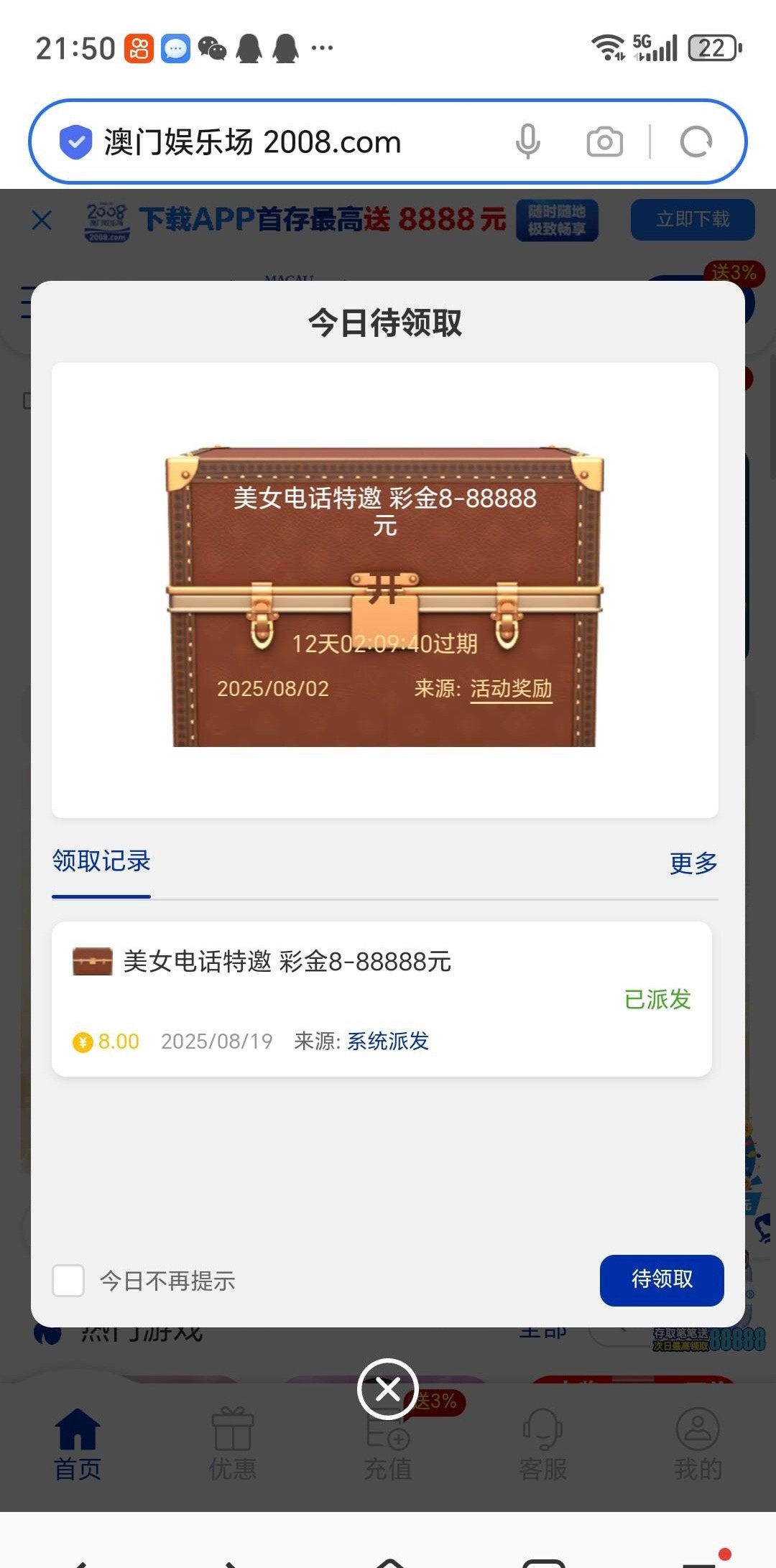 没给我打电话,我是看Q群老哥发的才上的号,老号注册没玩过,