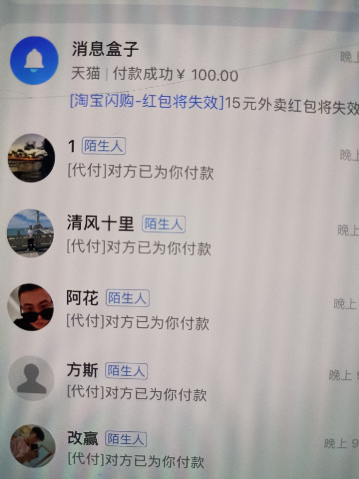 这不就是你买东西别人帮你代付了