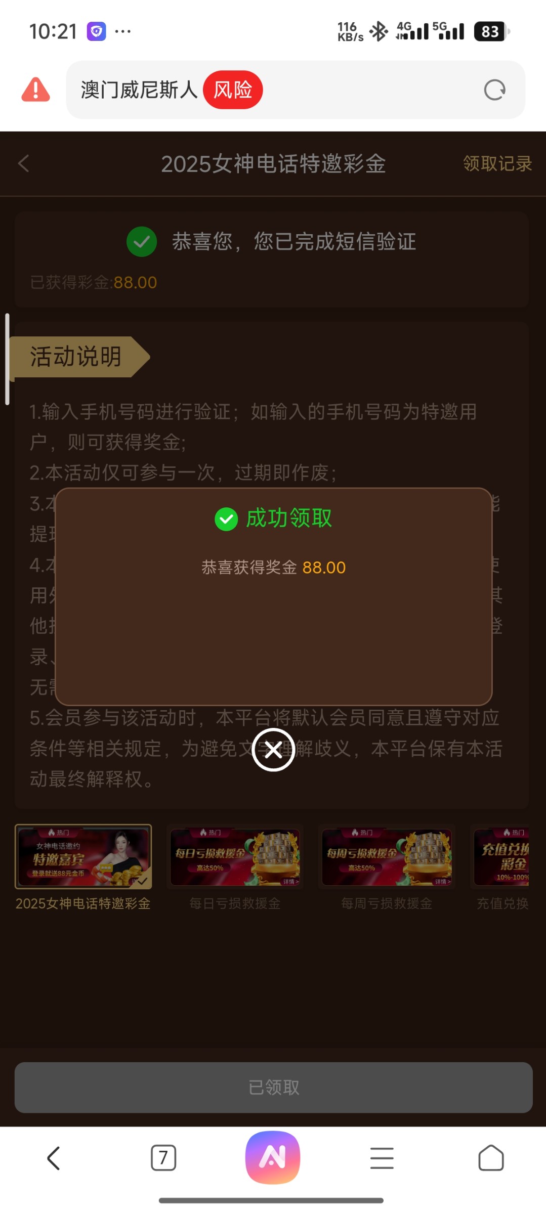 a528378916 牛逼 我也领到了 感觉应该是之前注册了过一段时间就有