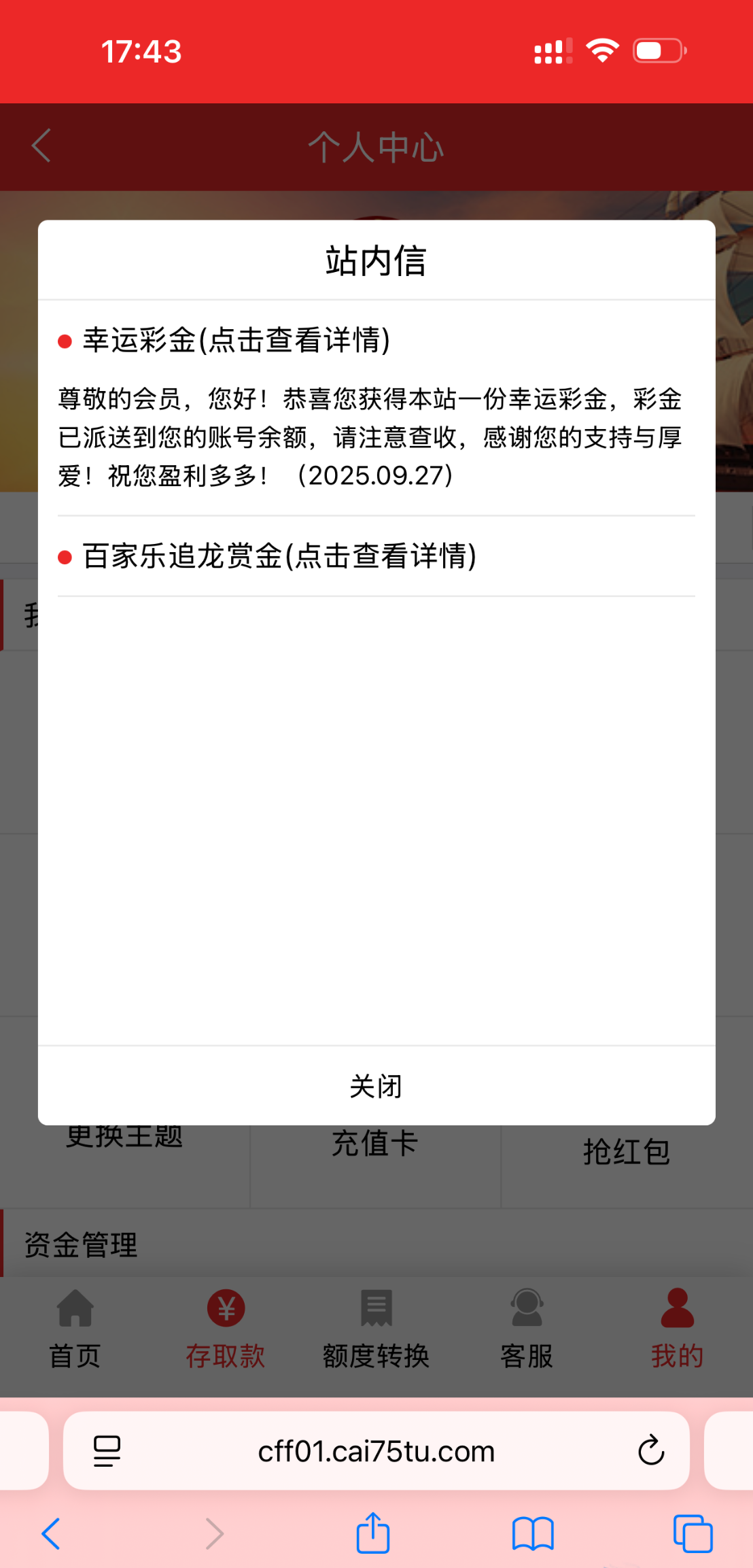 又送幸运彩金了 这个平台隔段时间都会送的,有号的可以去看一下网址:cai75.cc