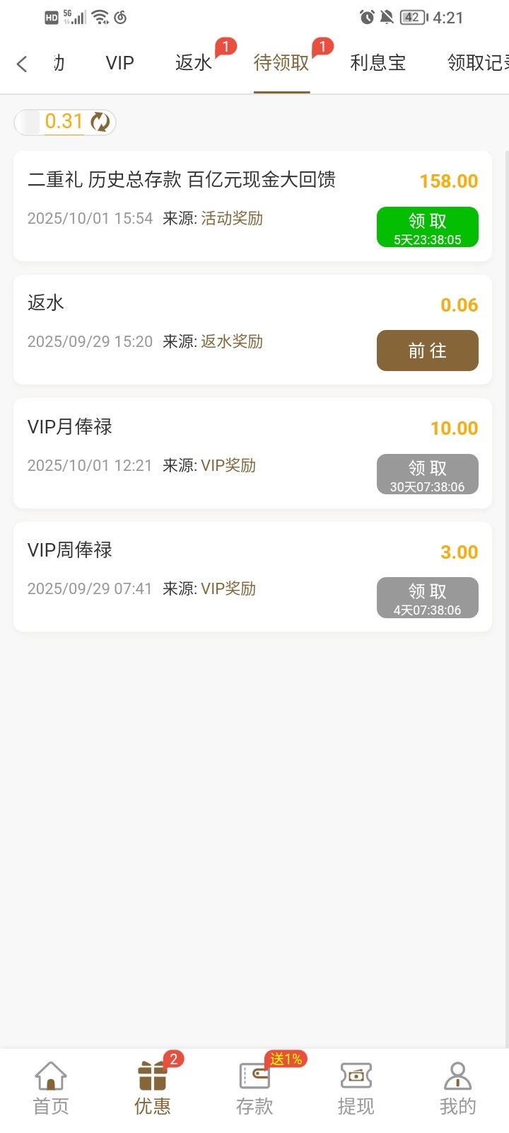 充值过的可以去看看历史回馈我领了158