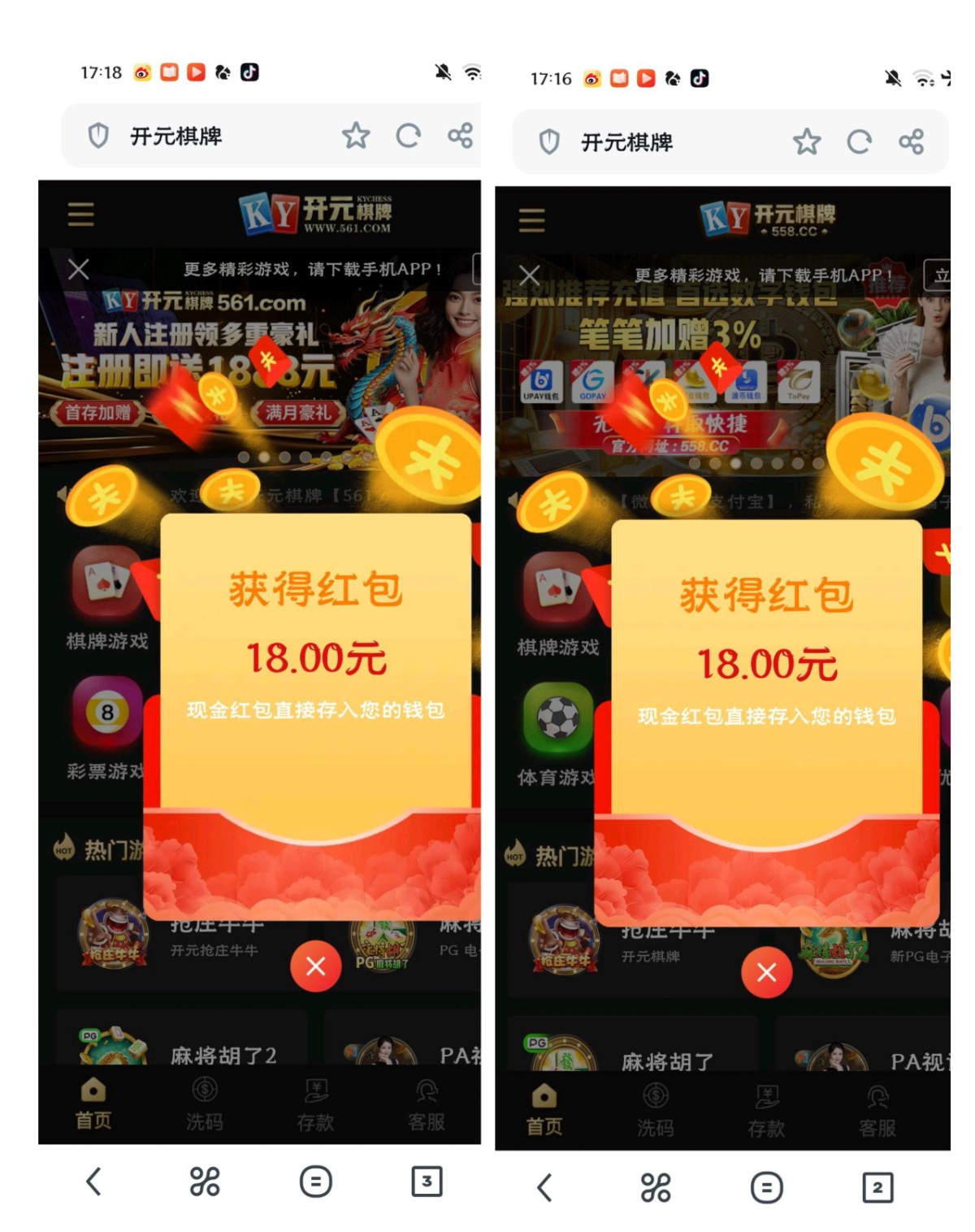 244.com,596.cc,561.com,558.com,这四个台子又送彩金了,打出来充个10块钱,百分之80能到账