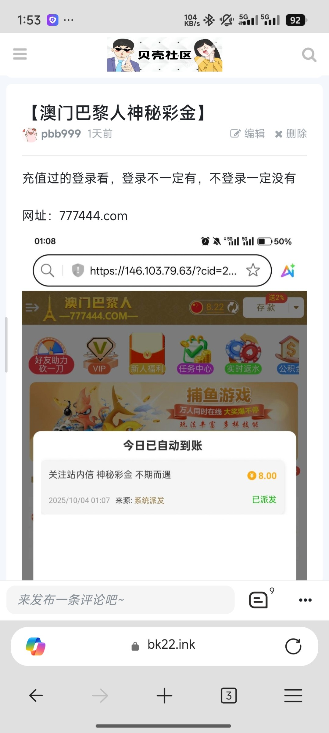 哥们有毛病我发的神秘彩金你发的以小搏大这都说帖子你发过傻逼吧