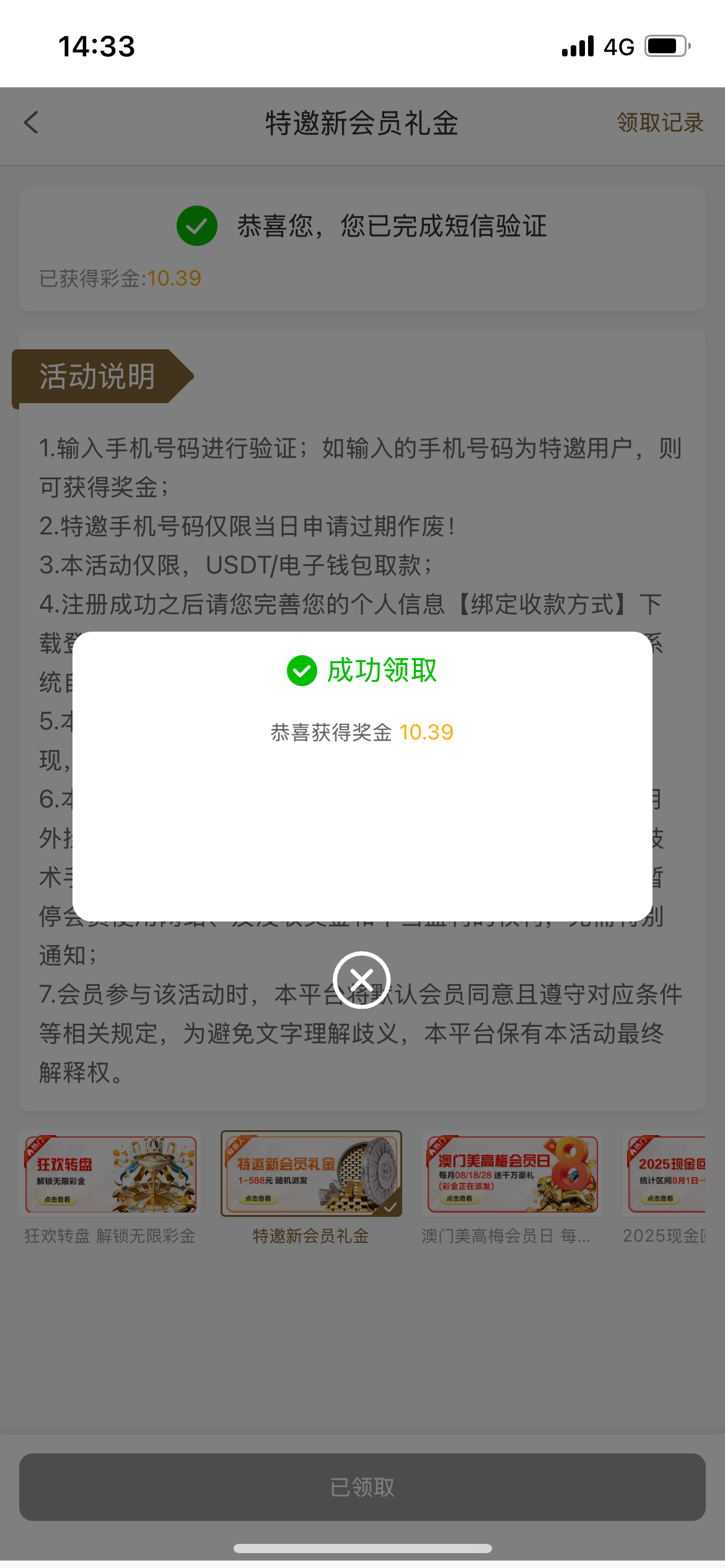 早领了,时不时还打电话叫上号领赌神彩金