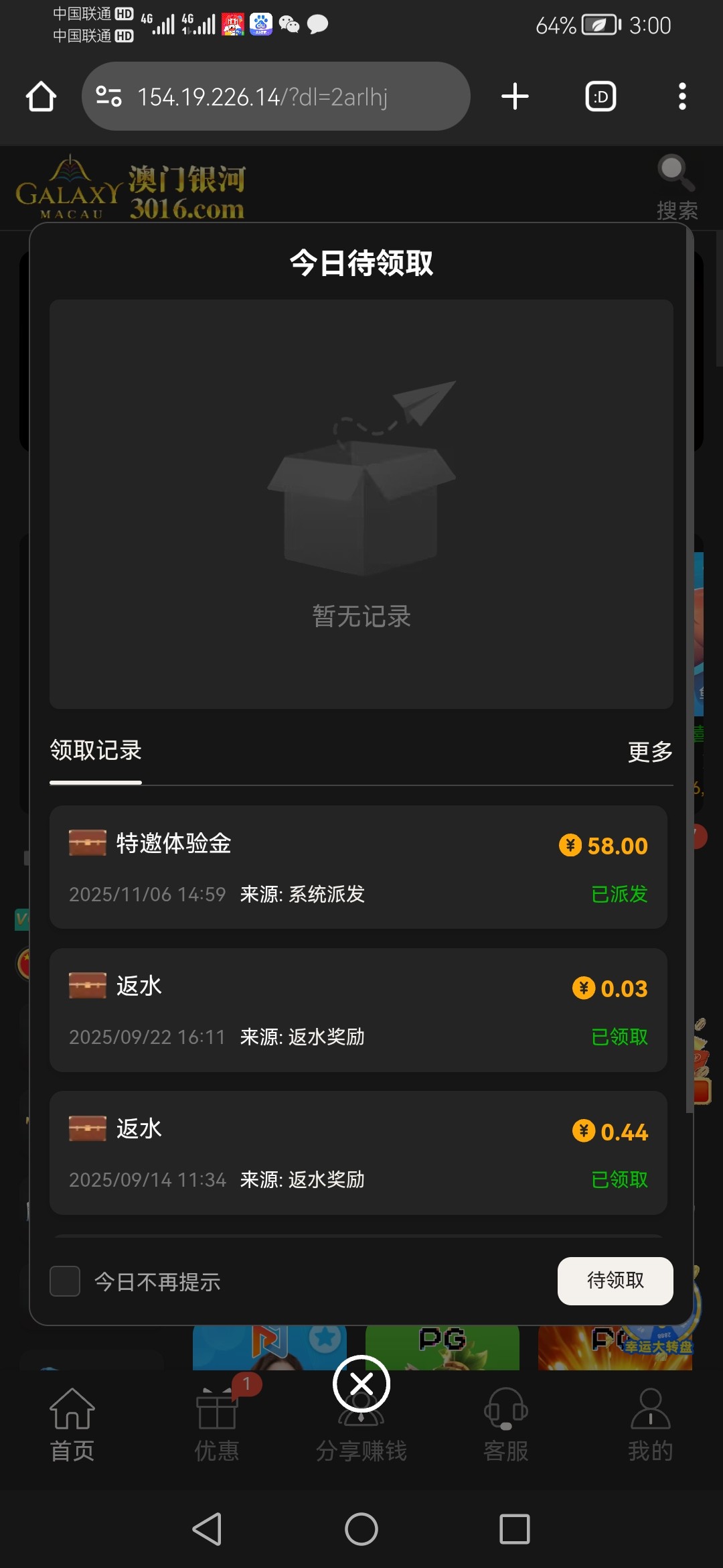 老用户注册3年了 刚刚接到电话说注册送58 我一脸懵逼然后找客服 客服给我送了