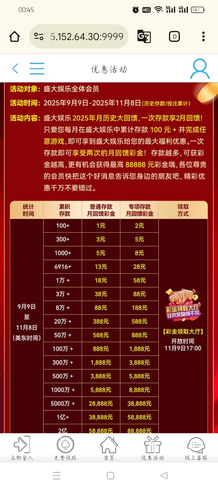 【盛大娱乐】存款回馈