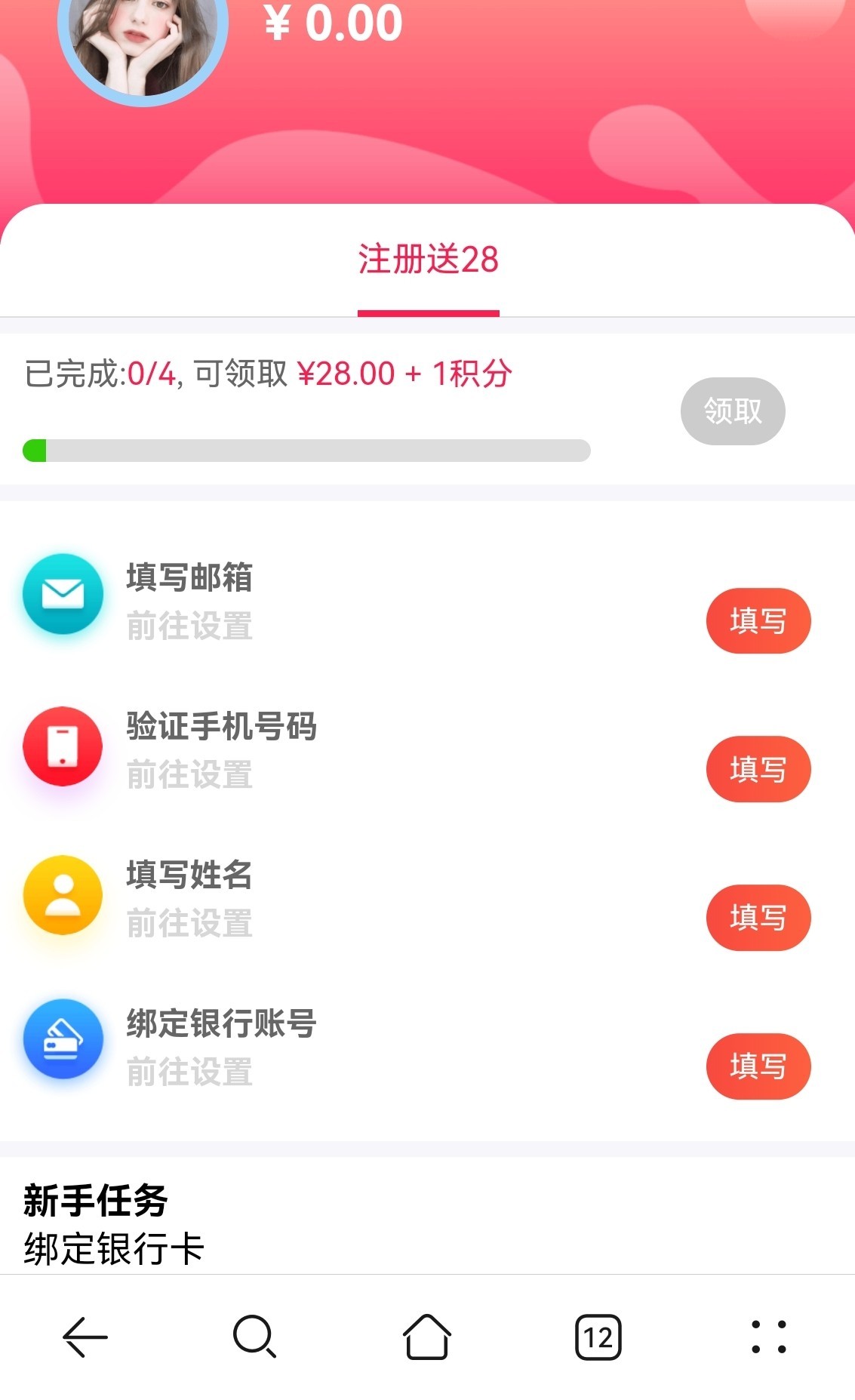 注册完去“我的”领取中心完善资料送28,客服要排队,耐心点,人多必黄,或者过段时间撸