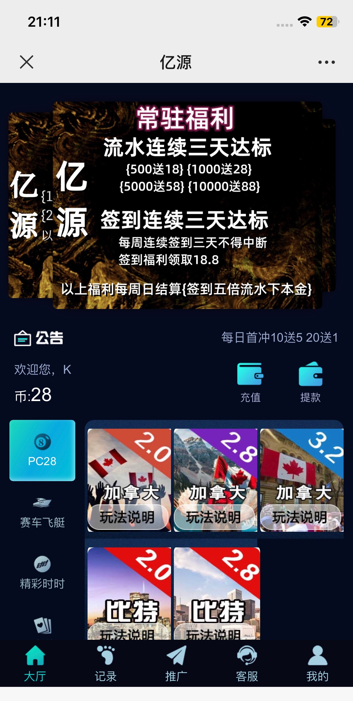 28打到188以上可以下分10%现金