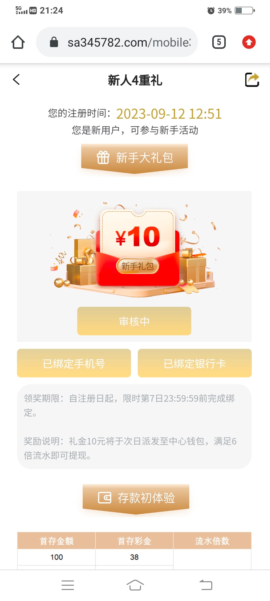 新用户注册去优惠大厅按要求绑定信息秒10彩金6倍流水出款,第一次出款要手持,具体去问下交流区哥们吧,切记勿充值勿充值。