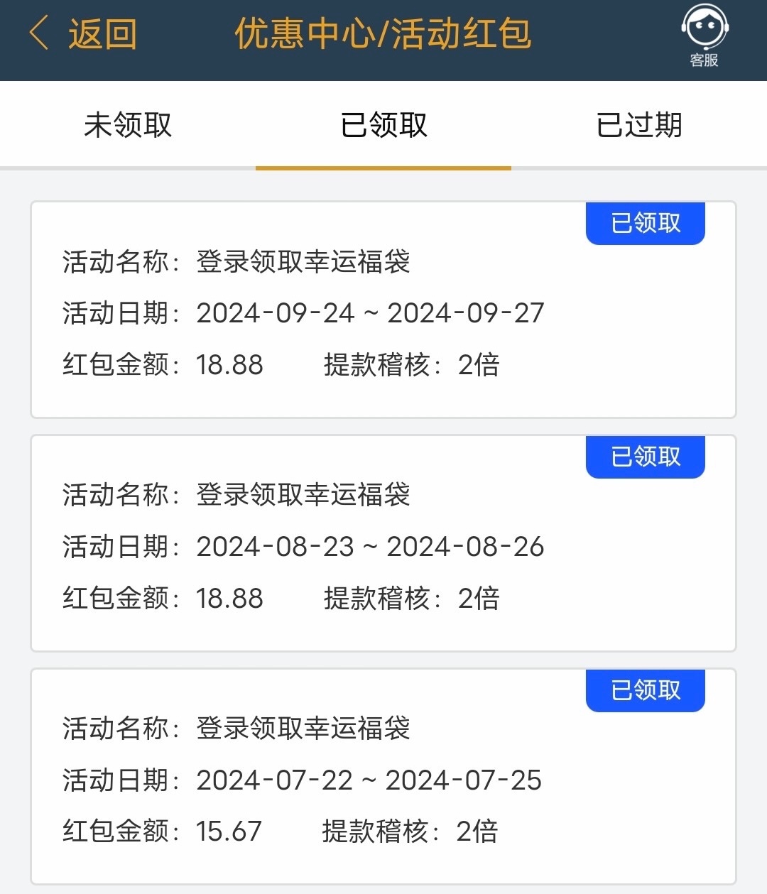 老用户自己上号查看有没有回馈 在优惠中心活动大厅哪里领取