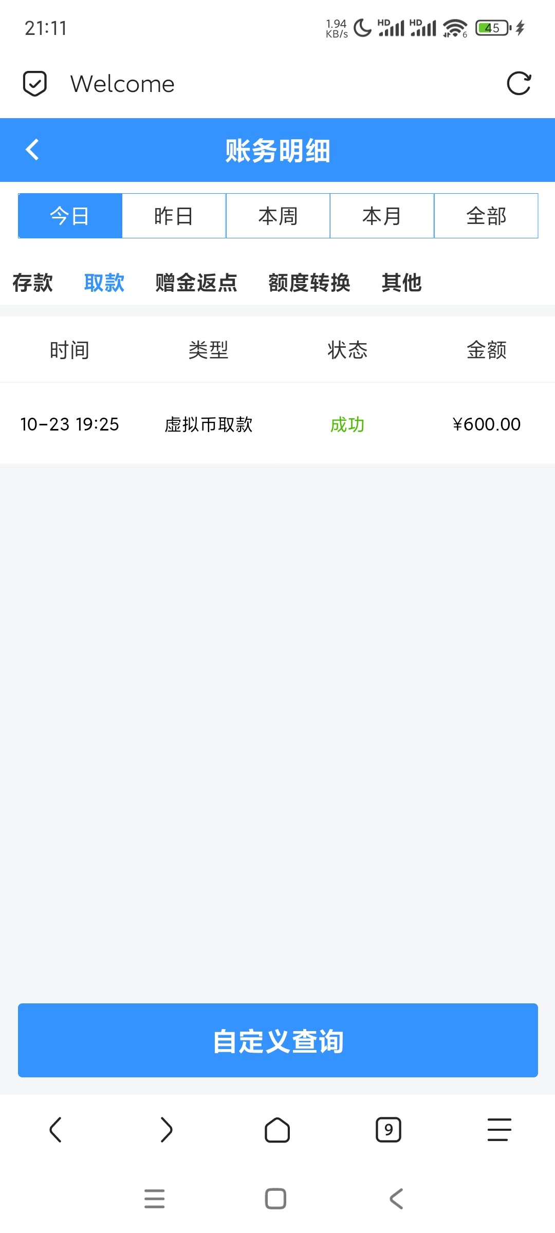 8块没打出来 充了100提了600到账了