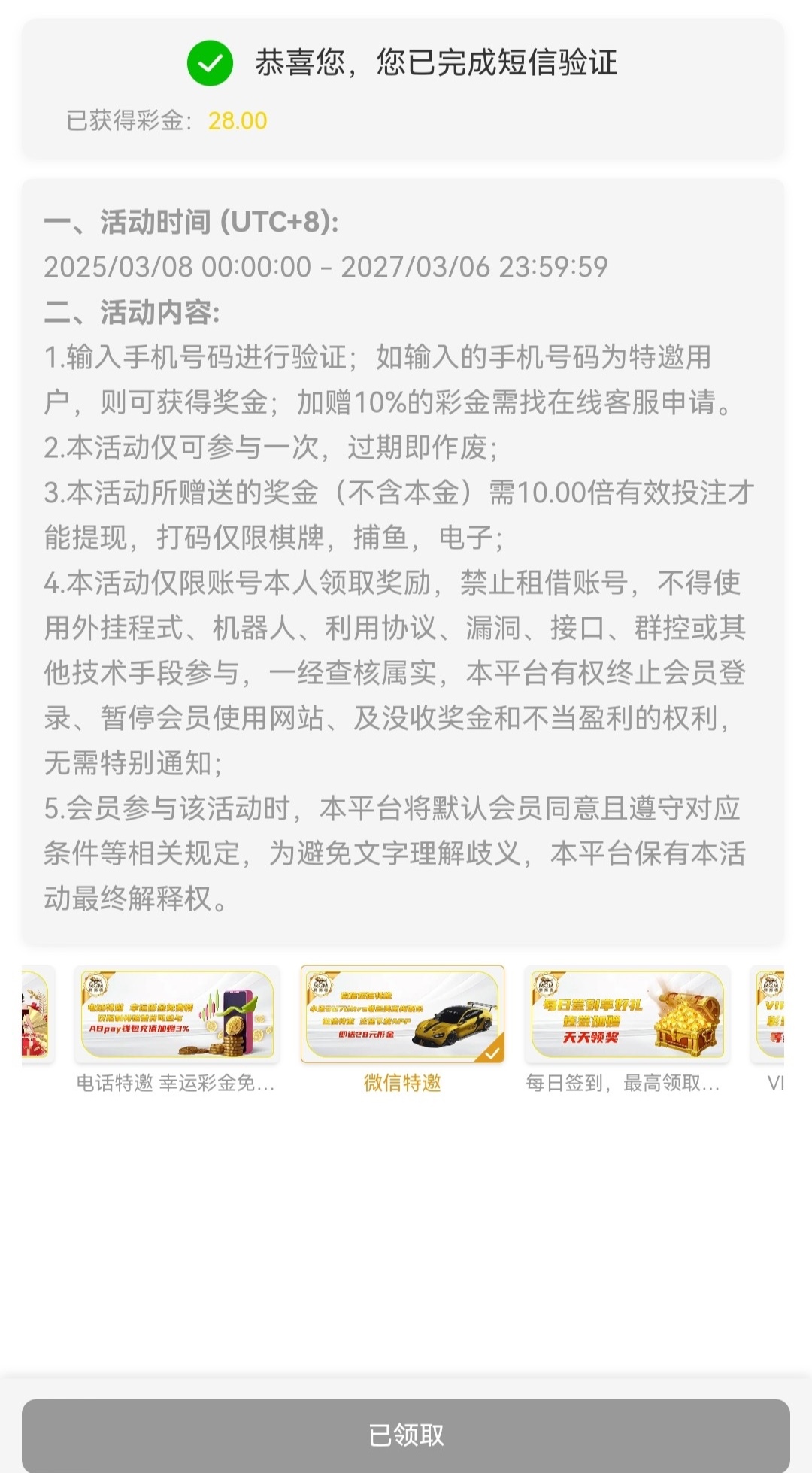 新用户下载APP注册绑定第三方钱包,去短信特邀那里输入手机号领28彩金,具体自测易黄速去