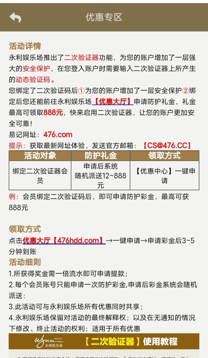 绑定二次验证器送12彩金,自助优惠里面申请即可,具体自测吧。
